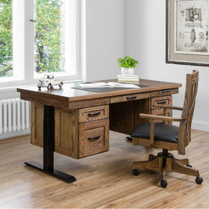 Amish Westin Double Pedestal Standinj Adjustable Rising Lift Desk with Drawers