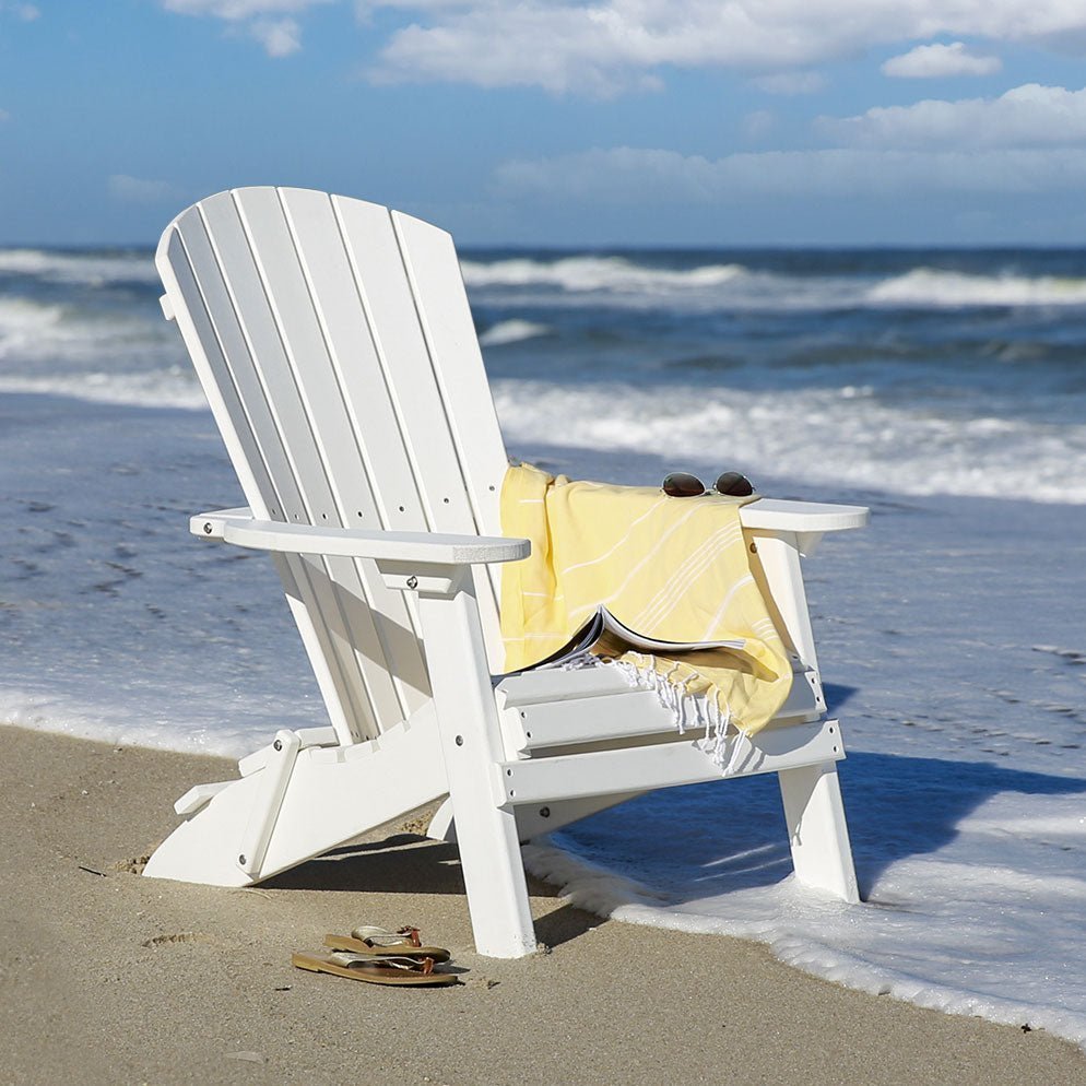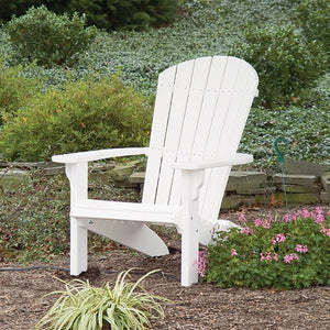 Amish White Poly Patio Fanback Adirondack Chair - Online Only Special The standard in outdoor relaxation. Sink into the fan back chair and enjoy peaceful bliss. This chair never rots, never rusts, and lasts forever. Recycled poly & Stainless steel construction. It doesn't get any better than this. Plus comes with a 20 Year Warranty! Want color options? Click Here!