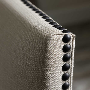 - Shown Legs/Antiquated Pewter on Antiquated Rustic Red Oak. Fabric/#C2-8 Sister, Dull Black Nail Head Trim