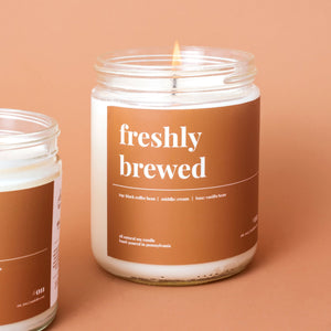 Freshly Brewed Soy Candle - Standard - If you've ever said "But first, coffee", this is for you! A more subtle blend of fresh grounds, this scent captures the most delicious cup of joe you can imagine. Enjoy with your favorite coffee or any time you want that rich, delicious aroma! FRAGRANT NOTES:top - black coffee beanmiddle - creambase - vanilla beanStyle
