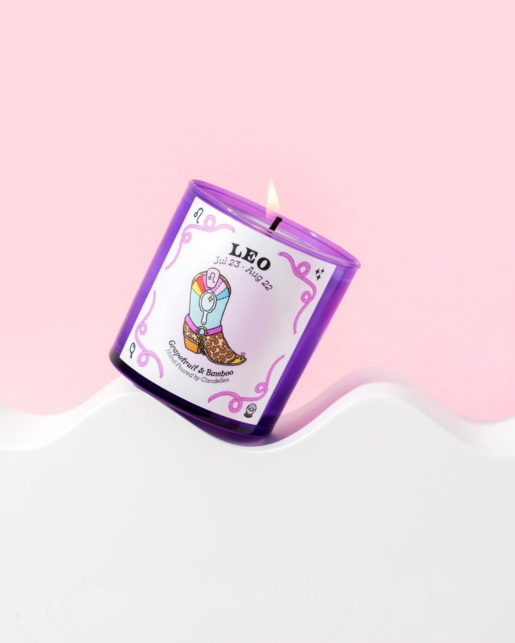 Grapefruit & Bamboo Soy Candle - Leo - Bring out your inner Leo when you light up our Grapefruit & Bamboo candle. It'll bring out your most exuberant, powerful self. Tap into your intuitive, sensitive soul with this unique combination of fruity and earthy notes, and let the flame fuel your ambition and blaze your trail!This candle was curated by Candell