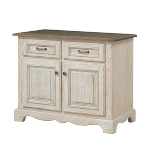 The Amish Jasper 2-Door Dining Room Storage Buffet is handcrafted only miles from our store in Lancaster County, PA out of northeastern hardwoods! Limited Lifetime Warranty Available in Oak, Brown Maple, Cherry, Maple, Elm, Hickory, and Quartersawn Oak.  42"W x 191/2"D x 333/4"H / Shown in Rustic Red Oak / Top: Aged Smoke, Rest: Aged Whitewash with 527-SIM & 117-SIM Hardware. Adjustable shelf behind the doors.