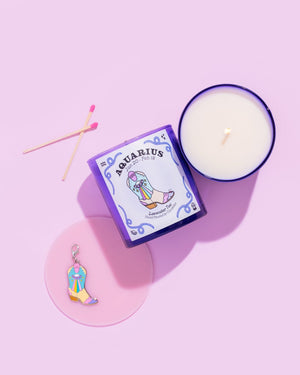 Lavender Tea Soy Candle - Aquarius - If you’re an Aquarius, you need a candle that’s just like you: unassuming yet loyal, something you can truly count on after a long day. Our Lavender Tea scent is a perfect match! With a soothing, floral blend of fragrances, this candle will keep you feeling zen and balanced.This candle was curated by Candelles, matchin