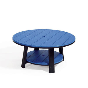 Handcrafted a few miles from our store in Lancaster County by an Amish Craftsman. This Amish Outdoor Patio Conversation Round Coffee Table is Available in solid color or two color combination (Main Color is top & shelf. Trim is legs).