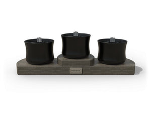 Urban Glow - Blaze | Amish Outdoor Furniture | Lancaster PA - Our Blaze set comes with three 5” round candles on a hand-crafted Poly Coastal Gray color base. The poly 2 tier base is derived from recycled plastic. The candles feature a 2,000+ hr wick burn time, stainless steel wick, wind-resistant, clean-burning, odo