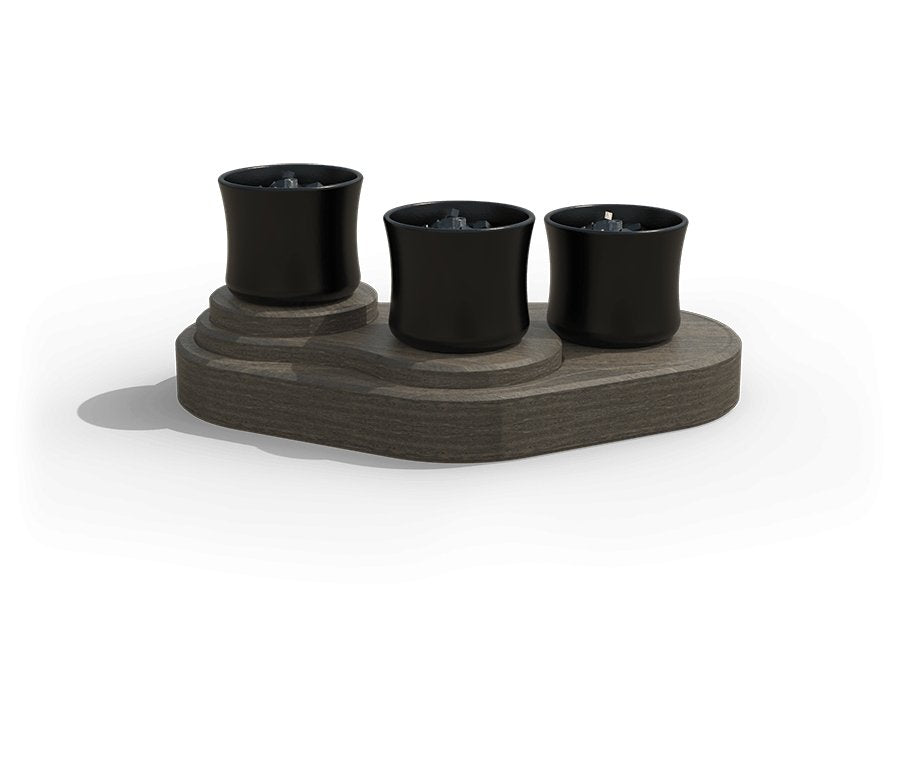 Our Reflection set comes with three 3.5” round candles on a hand-crafted poly coastal gray color base. The poly 3 tier base is derived from recycled plastic. The candles feature a 2,000+ hr wick burn time, stainless steel wick, wind-resistant, clean-burning, odorless & portable. The set includes a liter of Lovin Flame Fuel.