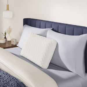 Two designs combined in one pillow. A gently arched side for back sleepers and a flatter side for side and stomach sleepers.
