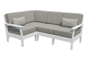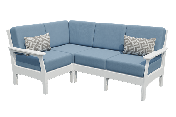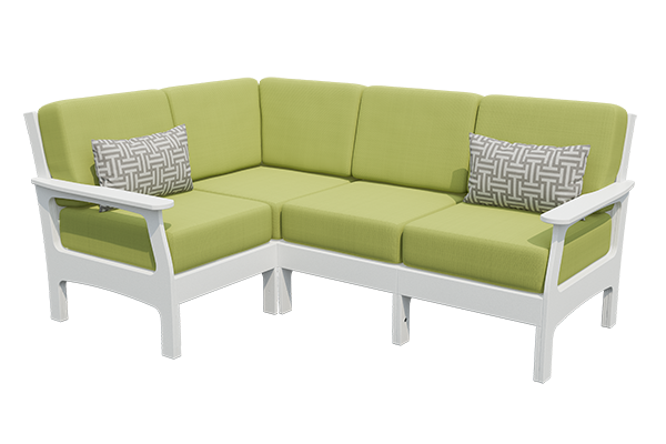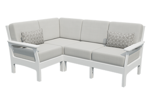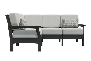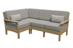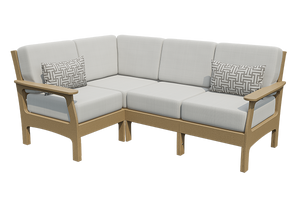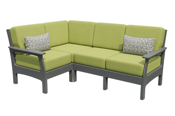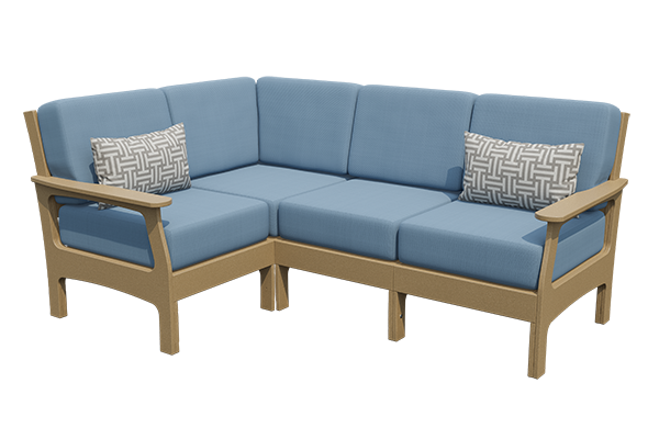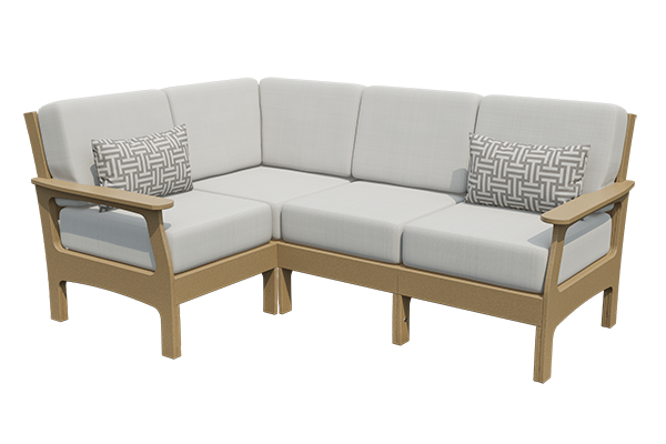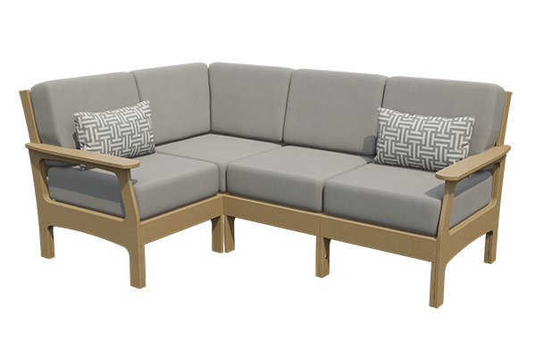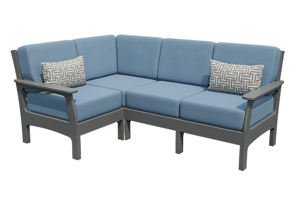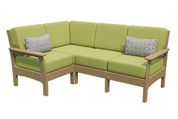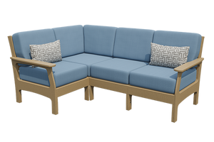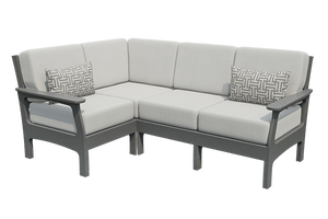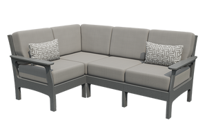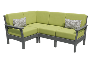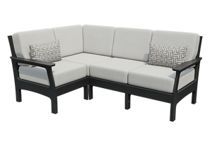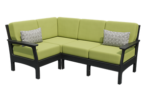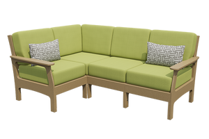 VaraMora 4-Seat Sectional – a perfect blend of comfort, durability, and style. The sectional is a stand-alone piece, but other inserts can be added to create a longer-length sofa or sectional – to your specifications. This extraordinary piece is ideal for outdoor relaxation and an elegant addition to your patio or garden decor. It is amazing by itself or a great start or addition to your VaraMora modular system. Comes with bottom and back Amish-stiched cushions, three Chair Inserts, a Corner Insert, and one left and one right arm.