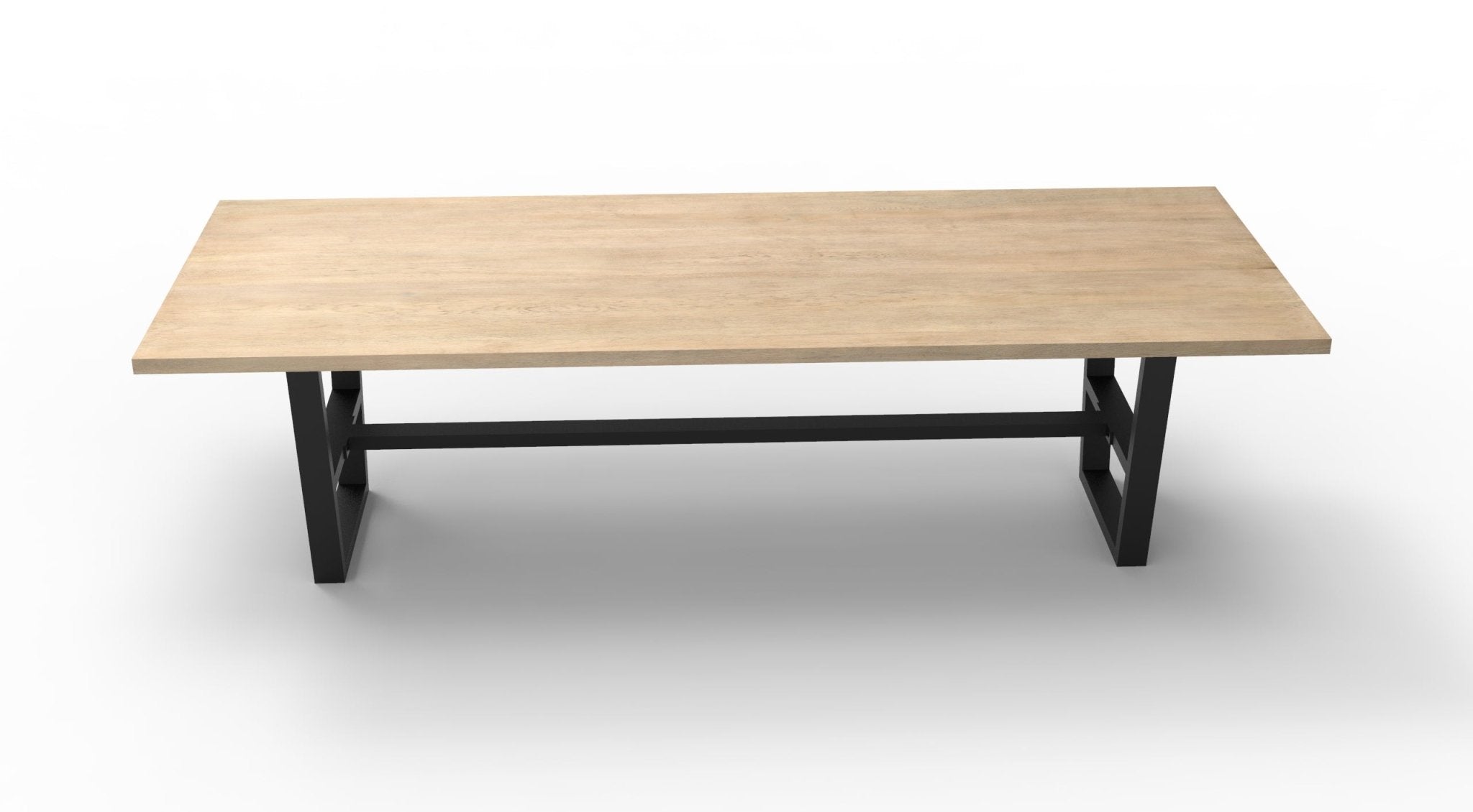 Wallace 108" Oak Dining Table - Light Natural - Arriving March, 2024.  Exclusive Carolina Live Edge product. Available in three finishes: Light Natural; Sandblasted Natural, and; Sandblasted Black. Coordinating benches available in 60", 72", 84", 96" lengths. Counter height leg option = 36" table height. Bar height leg option = 42" table height. Manufactured from so