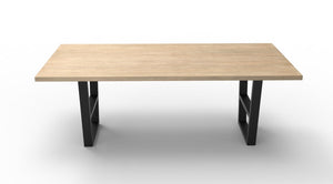 Wallace 84" Oak Dining Table - Light Natural - Arriving March, 2024.  Exclusive Carolina Live Edge product. Available in three finishes: Light Natural; Sandblasted Natural, and; Sandblasted Black. Coordinating benches available in 60", 72", 84", 96" lengths. Counter height leg option = 36" table height. Bar height leg option = 42" table height. Manufactured from so
