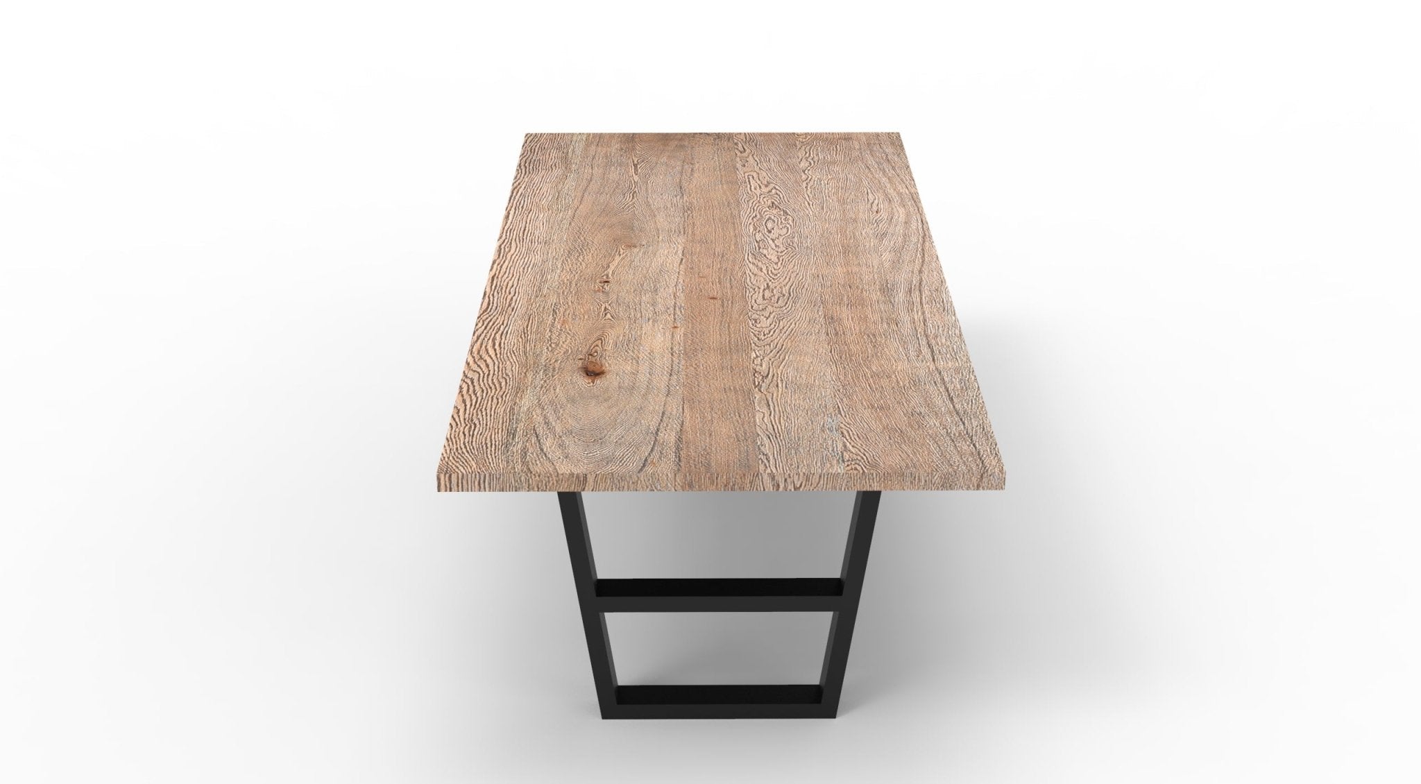 Wallace 84" Oak Dining Table - Sandblasted Natural - Arriving March, 2024.  Exclusive Carolina Live Edge product. Available in three finishes: Light Natural; Sandblasted Natural, and; Sandblasted Black. Coordinating benches available in 60", 72", 84", 96" lengths. Counter height leg option = 36" table height. Bar height leg option = 42" table height. Manufactured from so