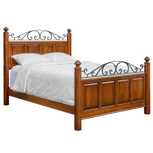 Amish Wellington Iron Scroll Panel Bed - This bed is part of the Wellington Collection. Shown in Cherry - Woodberry Stain - standard high footboard and iron accent. Handcrafted by Amish craftsman out of solid northeastern hardwoods. Optional Drawers are dovetailed and feature concealed drawer slides that effortlessly self-close. Shown with the standard footbo
